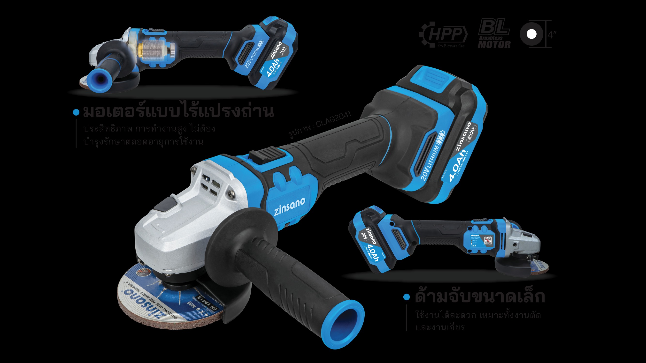 เครื่องเจียรไร้สาย 4นิ้ว 20 โวลต์ มอเตอร์ไร้แปรงถ่าน รุ่น CLAG2041